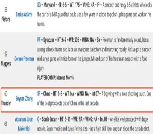下一个NBA球员美国知名选秀网站预测张博源次轮60顺位被选中!