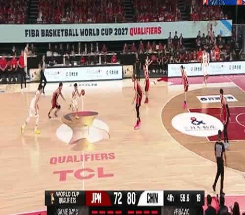 逼迫防守抢断贺希宁反击上篮得分!中国男篮65-60日本