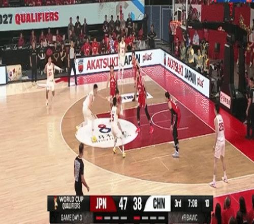 贺希宁强拔三分追至个位数!中国男篮38-47日本