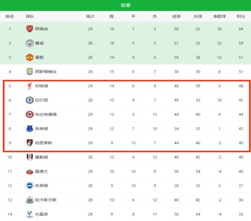 榜首的阿森纳,瓜迪奥拉的曼城拿下欧冠席位一点问题都没有,那么剩下的三个名额将由多达6支球队进行拼杀:曼联、维拉、利物浦、切尔西、布伦特福德和埃弗顿。