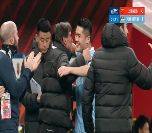 30分钟后,上海海港逐渐在前场形成了攻势,杨希和李帅的头顶脚踢,距离破门差之毫厘。而河南队的反击,令上海海港的禁区风声鹤唳,纳萨里奥的劲射击中立柱弹出。补时的最后一分钟,杨希横传禁区,加布里埃尔推射破门,1:2!半场比赛结束,双方只有一球的差距。