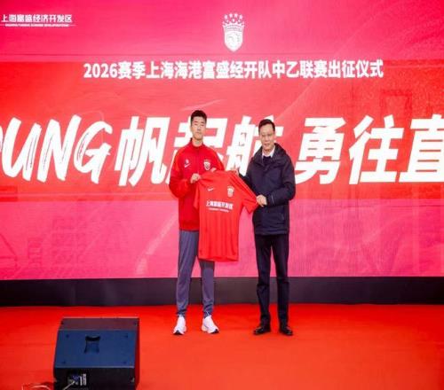 3月14日上午,上海海港富盛经开队(俱乐部B队)2026赛季出征仪式在东方绿舟体育训练基地举行。