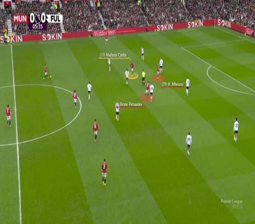 在这里,曼联在中场夺回球权后,库尼亚和费尔南德斯在右路形成过载。