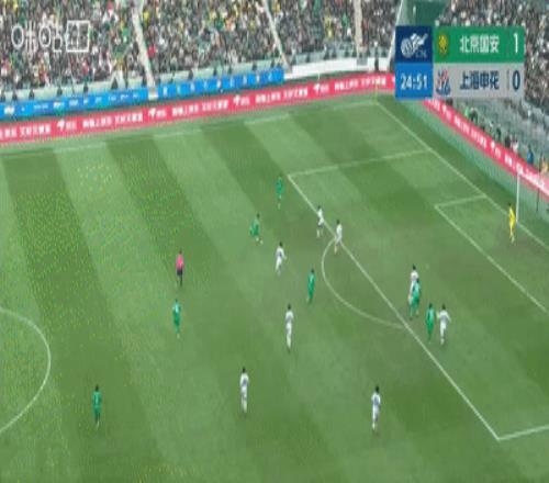 新赛季工体首球,张玉宁连续三场破门,国安半场10领先上海申花