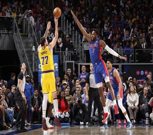 活塞上半场压制湖人一度领先16分之多,状态火爆的湖人则在下半场给出回应,更是依靠里夫斯的抛投在决胜时刻反超比分,无奈东契奇绝平三分未能命中,最终湖人110-113不敌活塞无缘10连胜。