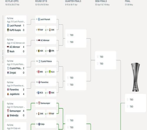 欧协联八强对阵:水晶宫vs佛罗伦萨,美因茨vs斯特拉斯堡