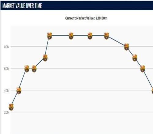 巴雷拉德转身价经历四连跌,从巅峰8000万欧跌至5000万