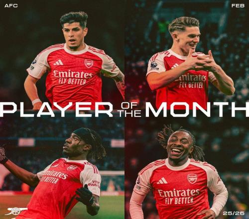 阿森纳2月最佳候选:因卡皮耶、哲凯赖什、马杜埃凯、埃泽