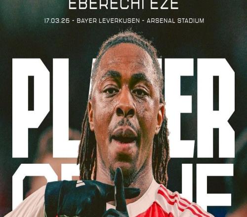 世界波破门,阿森纳官方:埃泽当选对阵勒沃库森一役队内最佳